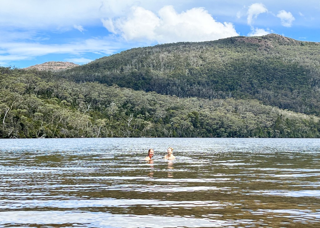 We reached Seal Lake after a little over an hour, and two of the crew just couldn’t resist the cool water of the clear lake and stripped off for a dip and swim, with the most beautiful backdrop of the ridge and wispy white clouds on blue skies. Perfectly timed it turned out, excited minutes before the arrival of an other family of hikers.