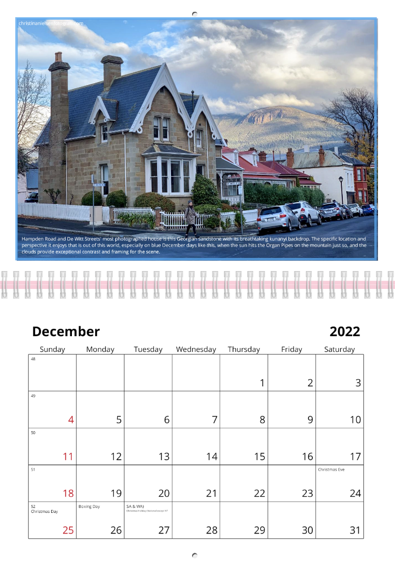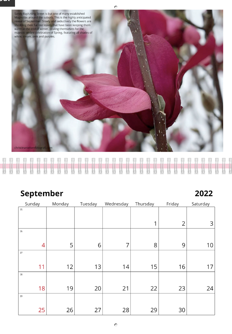 Printed in colour on recycled, premium quality, 150 gsm in A4 format (A3 when unfolded), the calendar is available for purchase on a printed to order-basis, shipping for $50 within Australia and $65 internationally.